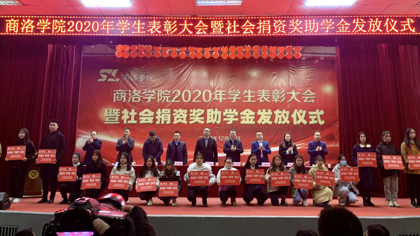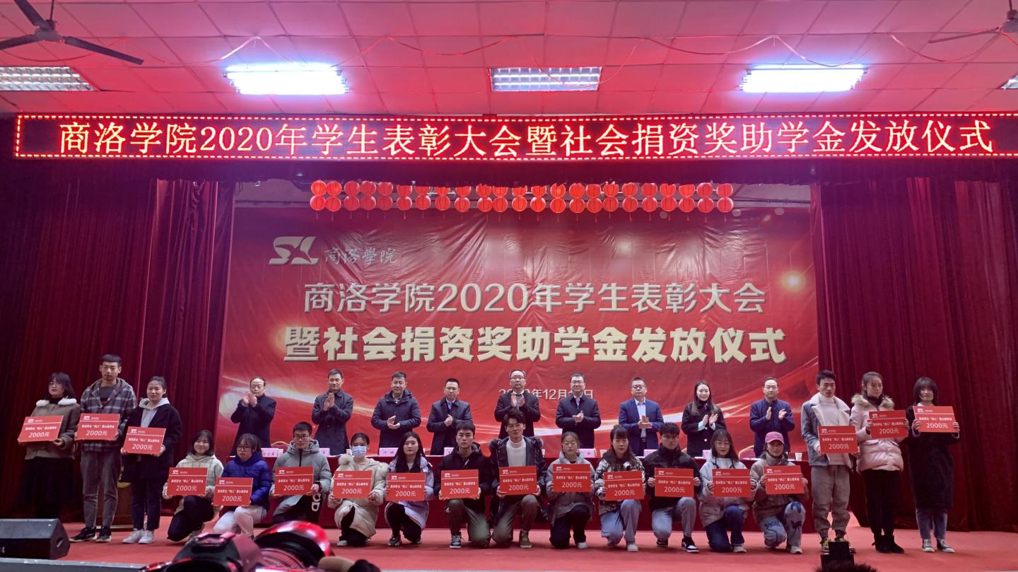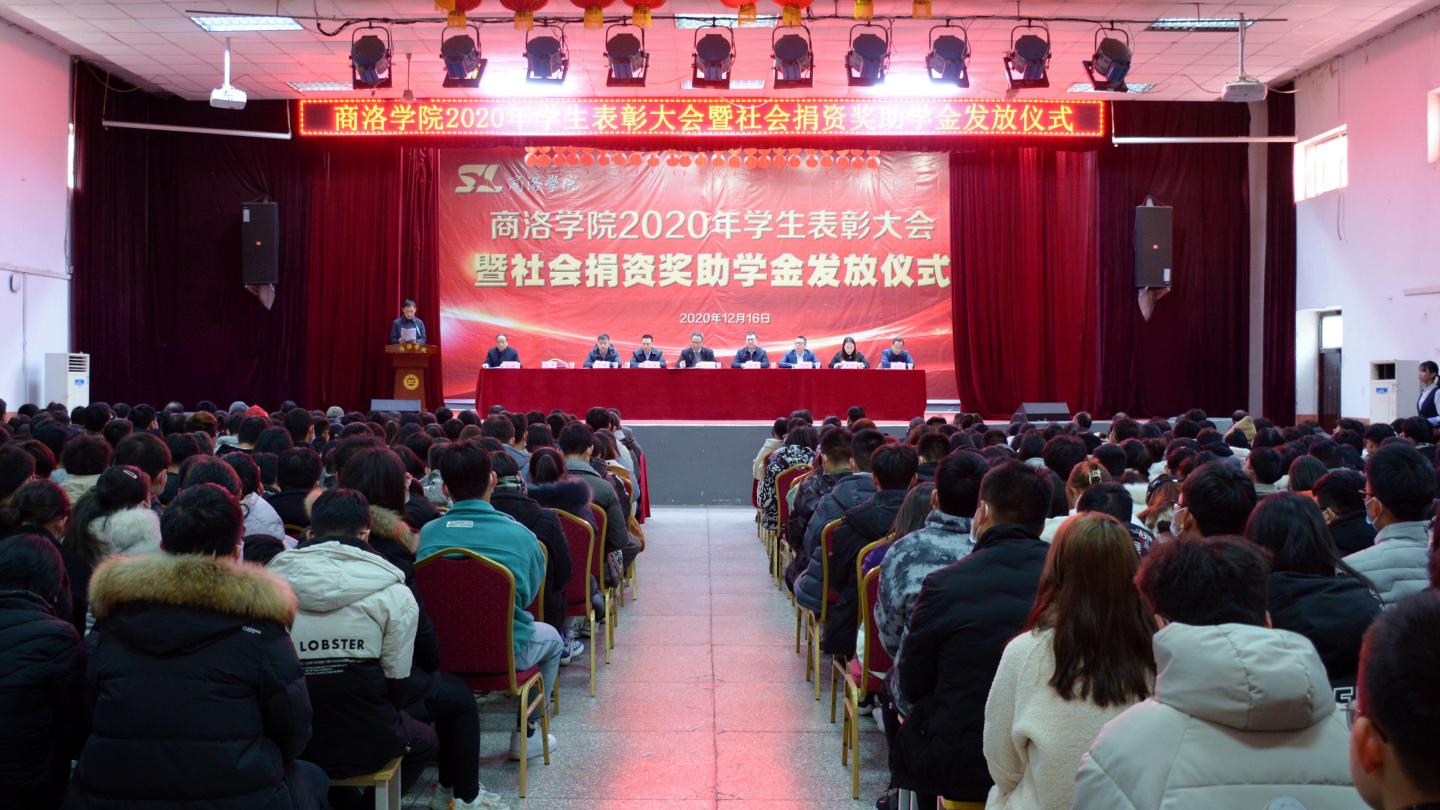 12月16日,开云官网2020年学生表彰大会暨社会捐资奖助学金发放仪式在大学生活动中心隆重举行。校党委书记龙治刚、党委副书记刘勇,国网商洛供电公司总经理李强,中国联通商洛分公司副总经理毛繁,中国电信商洛分公司副总经理王军建,中国移动商洛分公司党委委员、副总经理许鹏,贵州茅台陕西省区域负责人李方,校党委委员、党委办公室·院长办公室主任、校友总会办公室负责人张向东等出席大会。大会由学生处处长石启英主持。