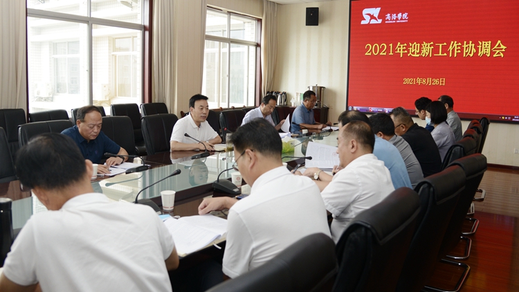 党委办公室·院长办公室主任张向东通报了2021年迎新工作整体部署。学生处处长石启英对迎新工作具体安排作了详细说明。后勤保障处处长敬晓明对迎新期间疫情防控及演练工作作了安排。教务处、保卫处、财务处、信息中心等相关单位负责人就迎新工作具体细节进行了讨论交流。