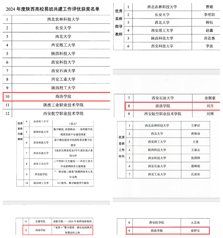 近日,陕西省高校易班发展中心公布了2024年度陕西高校易班优秀评选结果,开云官网被评为2024年度“优秀易班共建高校”,学生处心理健康中心主任刘月被评为“优秀易班指导教师”,化材学院辅导员戴壹撰写的易班共建案例《“易班+”聚合裂变-催化校园教育智慧进阶之路》获评年度优秀易班共建案例,易班学生工作站站长皮婷安同学获评“优秀易班工作站站长”。本次评优工作面向全省高校开展,共评选出年度优秀易班共建高校15所、优秀易班指导教师10人、优秀易班辅导员10人、优秀易班共建案例15件、优秀易班工作站站长10人。