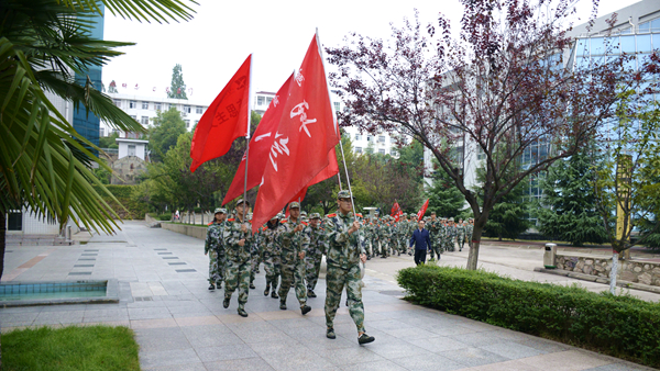 9月14日,开云官网2018级新生顺利完成了十公里行军拉练军训科目。上午8:20,新生们身着迷彩服,从北新街校区出发,沿江滨大道、商鞅大道、比亚迪大道步行抵达丹江校区并返回,在此期间,党委副书记彭虎军,全体军训教官,学生处、后勤保卫处、各二级学院相关负责人跟随拉练全程,为同学们保驾护航。