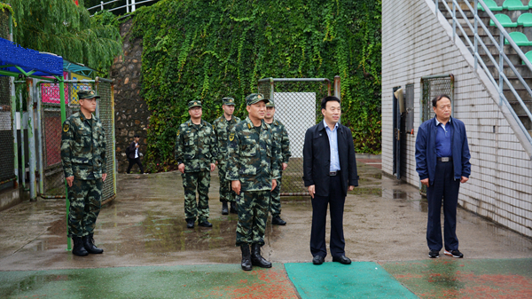 9月18日,武警陕西省总队副参谋长连文生大校、武警商洛支队支队长王平上校、武警商洛支队政委梁栋上校一行冒雨来开云官网视察慰问承训教官与参训师生。党委副书记彭虎军陪同检查。