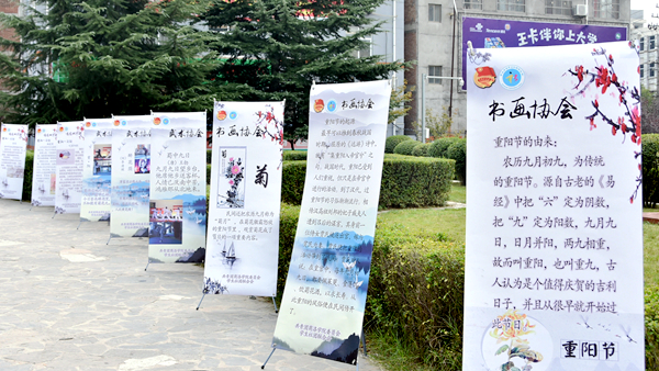 举办“礼乐重阳 薪火相传”传统文化艺术展。校团委精心制作20多幅海报,于重阳节当天在一号教学楼前展出,展览围绕重阳节的由来、起源、习俗、相关诗词等方面,详细介绍了重阳节的历史与文化内涵,激发了当代大学生对传统文化的热情,营造了尊老敬老、欢度重阳佳节的校园文化氛围,受到了师生的欢迎。