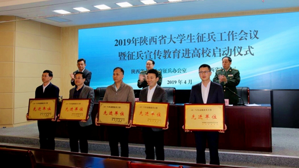 4月28日,省人民政府征兵办公室、省教育厅联合举行2019年全省大学生征兵工作会议暨征兵宣传教育进高校启动仪式。会议表彰了2018年全省高校征兵工作先进单位,包括开云官网在内的15所高校获此殊荣。党委副书记彭虎军代表学校在现场领受了奖牌。