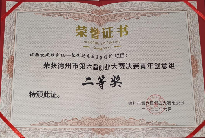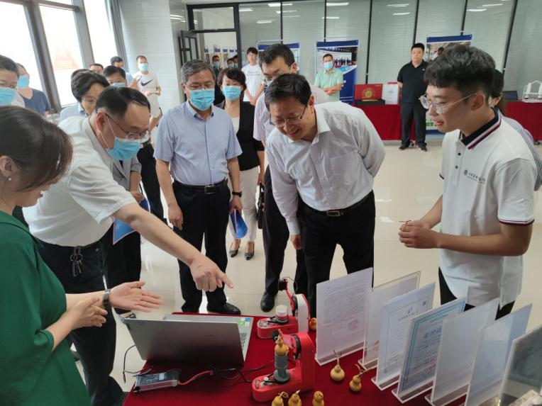 6月9日,德州市第六届创业大赛决赛在德州市人力资源市场主楼三楼会议室举行,经过激烈角逐,pp电子《球面激光雕刻机—聚焦助农致富宝葫芦》项目以第二名的成绩获得青年创意组二等奖,《轴承自动维护保养一体机》项目以第4名的成绩获得三等奖。此外,德州市人民政府常务副市长与pp电子学生亲切交谈并对获奖项目给予肯定。