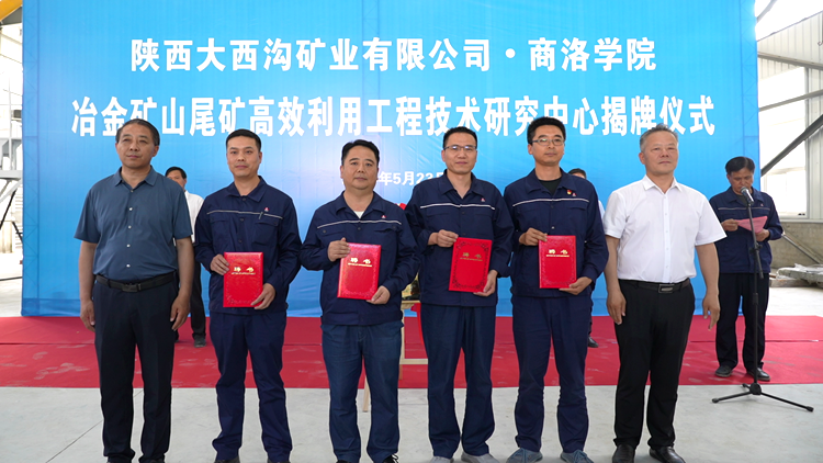 张志昌与郗九生共同为“冶金矿山尾矿高效利用工程技术研究中心”揭牌。