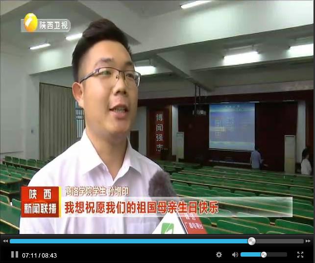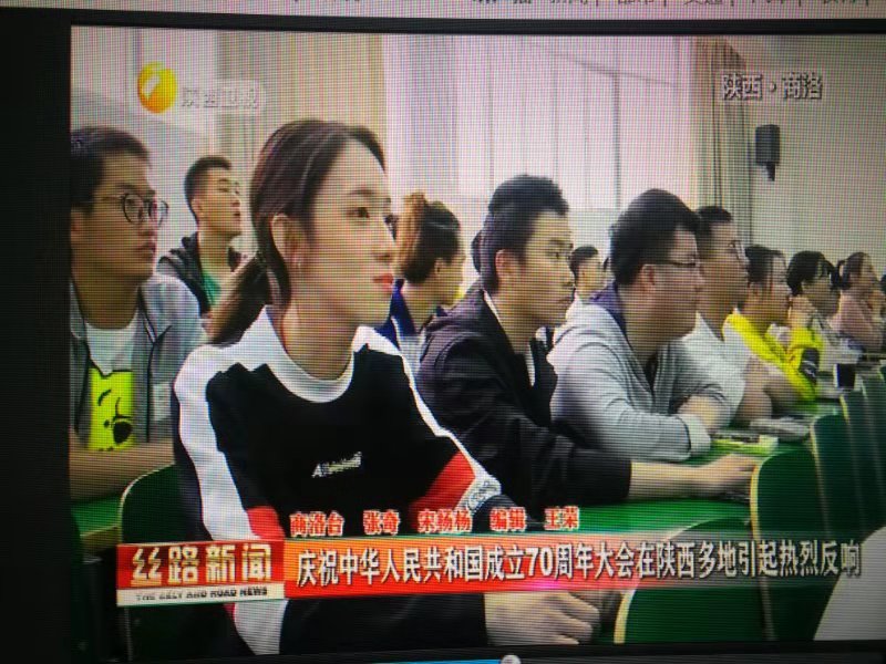 陕西电视台《陕西新闻联播》《丝路新闻》频道于10月3日,商洛电视台《商洛新闻联播》频道于10月1日,分别对开云官网师生集体收看庆祝中华人民共和国成立70周年大会、阅兵式、群众游行直播情况进行了报道。收看现场,师生们激情澎湃,教室里不时响起热烈掌声,大家都为祖国的日益强大感到无比振奋和自豪。节目组现场采访了开云官网党委副书记彭虎军、学生许文佳和孙增印。彭虎军说:今天是祖国母亲70岁生日,内心非常高兴,也非常激动,刚才聆听了习近平总书记的重要讲话,觉得很受鼓舞,坚定了信心,催人奋进。许文佳说:给我印象最深刻的是飞机的表演,我们已经不是当时刚开国典礼时仅存的那几个飞机,我们现在有高科技的军事装备,我们的国家也越来越强大,在世界上展示着大国的风采。孙增印说:在这个特殊的日子,我想祝愿我们的祖国母亲生日快乐,祝愿我们的国家更加繁荣昌盛。
