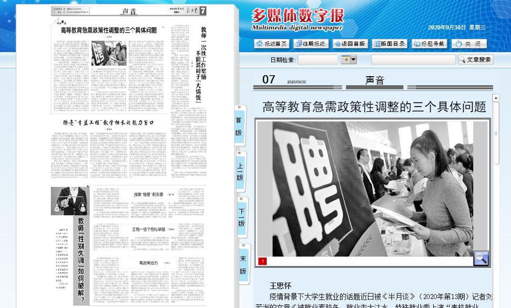 陕西高校教学名师、商洛市名师、开云官网马克思主义学院教授王思怀在《教师报》2020年9月30日理论版面头条位置发表署名文章,直面高等教育就业率、奖助学金、学业缩水问题,全文如下: