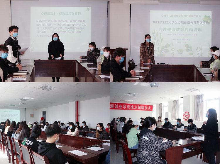 启动仪后,国家三级心理咨询师,辅导员任倩面向全院心理委员开展了“心理育人激扬青春 阳光护航助力成长”主题培训。培训现场,任倩通过专题讲解、心理游戏、现场互动等形式和学生进行交流沟通,了解同学们心理状况。同学们纷纷表示以后将会多关注心理健康方面知识,保持积极健康心态。