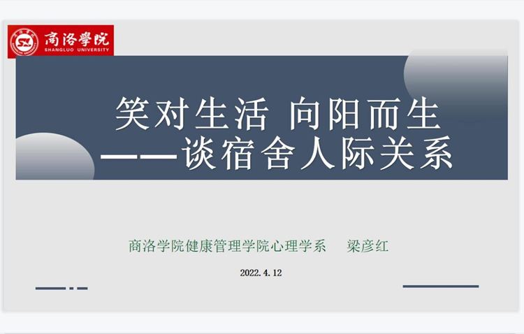 为帮助我院学生做好心理调适和学习生涯规划,更好地处理好宿舍人际关系。4月12日,健康管理学院心理学系教师、国家二级心理咨询师梁彦红副教授通过在线平台以“笑对生活 向阳而生—谈宿舍人际关系”为主题作了线上公益讲座。
