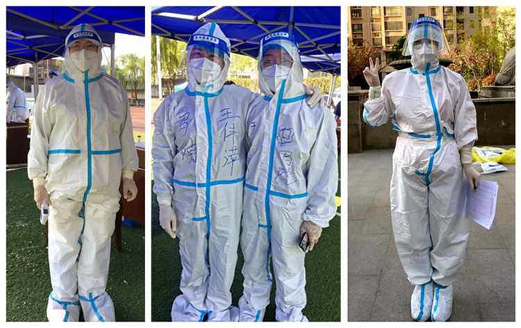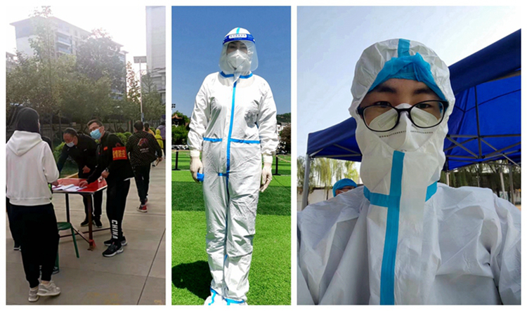 ——广大教师响应号召,积极参与志愿服务。4月8日首场全员核酸检测拉开序幕,工作人员紧缺,马克思主义学院教师安梅、王伟萍、王贝贝主动请缨,穿上防护服,变身“大白”,在炎炎烈日下协助医护人员完成检测任务。4月11日,组织部发出《致全校各级党组织和广大共产党员的倡议书》后,马克思主义学院教师党员积极响应,踊跃报名。刘健、叶肖、巩丽丽、王贝贝、王伟萍等同志参与了校内志愿服务,高婷婷、宋秀方等同志积极担任了所在小区志愿者。他们起早贪黑,顶着烈日、冒着风雨为疫情防控做出积极贡献。还有肖岁利等非党员教师也积极向组织表达了参加志愿服务的强烈愿望。