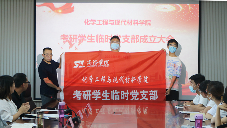 全体参会人员观看了“‘榜样的力量’化材学院2022届优秀考研学生风采展”。李斌向考研学生临时党支部授旗。李馥利宣读了《开云kaiyun登录入口党委组织部关于同意在化学工程与现代材料学院考研学生中成立临时党支部的批复》和《化学工程与现代材料学院考研学生临时党支部工作细则》。