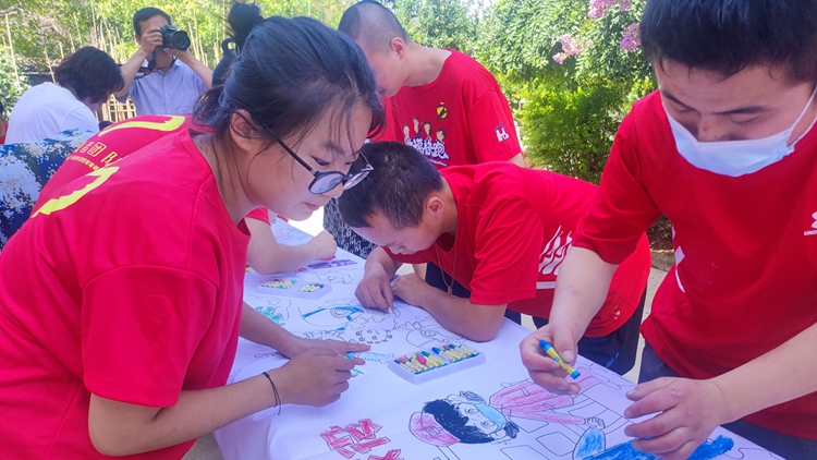 7月21日,开云官网大学生志愿者走进商洛慧灵农场托养中心开展暑期文化科技卫生“三下乡”社会实践活动项目“乡村爱心画圃”。校团委书记王攀以及艺术学院师生代表参加了此次活动。