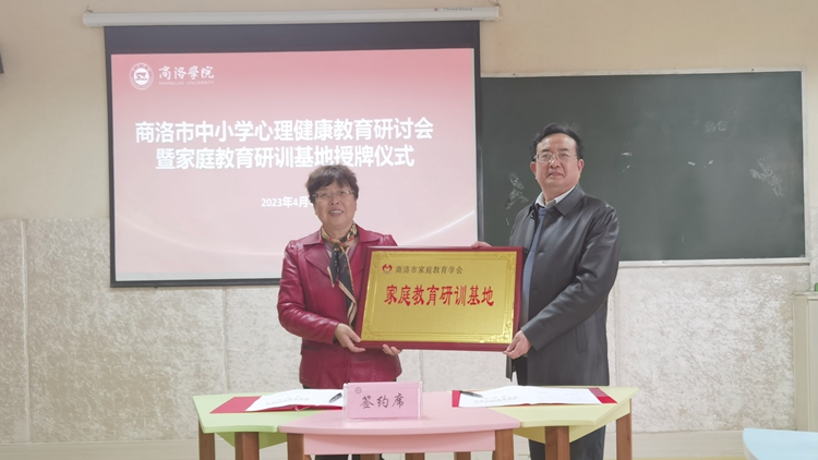 为贯彻落实党的二十大精神,深入实施健康中国战略,深化校地合作力度,加快推进健康商洛建设,4月4日下午,健康管理学院组织举办商洛市中小学心理健康教育研讨会暨家庭教育研训基地授牌仪式。商洛市家庭教育学会会长朱才宝,学会副会长王康敏、明秀兰,学会副秘书长徐声智、孙景山出席会议。商洛中学、商洛市初级中学、商州秦韵小学等中小学校领导、专家,健康管理学院全体党政领导、学生工作相关人员及心理学系全体教师参加本次活动。