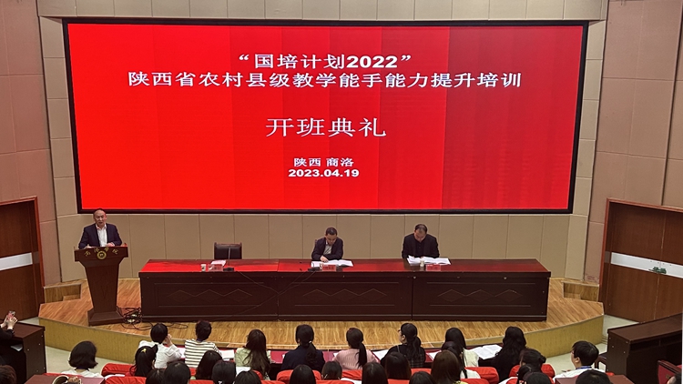 4月19日,国培计划(2022)陕西省农村县级(小学语文、小学数学)教学能手能力提升培训项目在开云官网开班。继续教育学院院长付军昌及培训管理团队相关人员出席开班典礼。来自全省近百名小学教学能手老师参加了培训。开班典礼由继续教育学院副院长任新山主持。