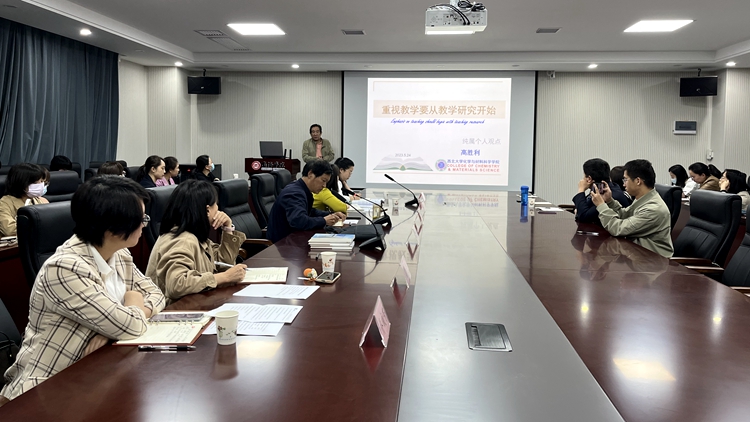 高胜利教授结合自身丰富的教学研究经验,分享了编写《化学元素周期表》《非金属同素异形体综论》和《无机化学探究式教学丛书》的案例,指导在场教师如何做好教学研究、提升教学能力,以教学成效培养一流应用型人才。他以润物细无声的教育方式引导大家坚持对教学工作保持矢志不渝的热爱,具备强烈的社会责任感,切实做到不忘初心、牢记使命。