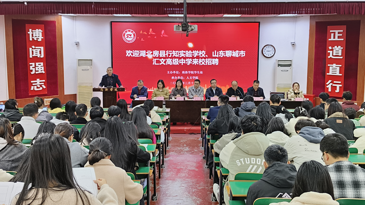 为扎实做好稳就业工作,促进供需精准对接,3月14日上午,人文学院举办2024年春季学期师范类专场招聘会,邀请湖北房县行知实验学校、聊城市汇文高级中学与学生进行双向洽谈。人文学院党委书记杜明生、院长张文诺,学生处处长李彦广、副处长张文到招聘会现场指导,并与两家用人单位围绕校企合作、人才培养等方面深入交流。