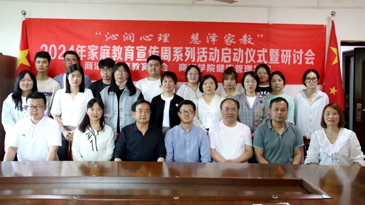 5月13日,健康管理学院服务“中国康养之都”根植地方团队17人走进商洛市家庭教育学会参观学习,联合举办2024年家庭教育宣传周系列活动启动仪式,并开展“沁润心理 慧泽家教”主题研讨会。商洛市家庭教育学会会长朱才宝,副会长刘建红、方向,副秘书长孙景山,办公室主任梁霞,健康管理学院副院长杨宪华、心理系主任梁丰及教师、学生代表,特邀社会人士王莉、学生家长吕慧莲共20余人参加了会议。