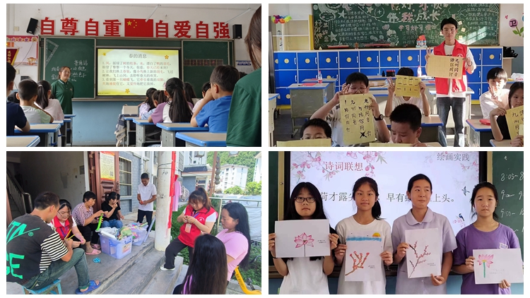 本次活动中,人文学院“领航青年宣讲团”围绕普通话知识科普、亲情陪伴、素质拓展等主题精心设计了一系列丰富多彩的科教文体活动,通过趣味游戏、诗歌朗诵、书法训练、手工制作、舞蹈排演等形式,让孩子们在轻松愉快的氛围中收获了知识、拓展了眼界,播下了梦想的种子。活动中,宣讲团还向米粮镇中心小学和清泉村捐赠图书400余册,向参会群众发放了由宣讲团精心设计的编织袋、手工折扇等礼品,并组织孩子们体验了漆扇的制作过程。