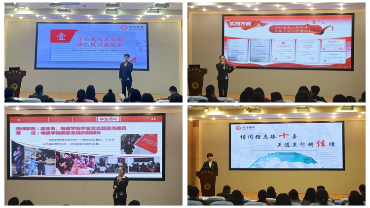 团委书记王姗、教务处副处长王欣分别对初评对象的出色表现给予了充分肯定,结合各个初评对象的展示内容进行了点评,并鼓励大家要继续发挥榜样作用,激励和带动更多同学不断完善自我、勇于创新,努力成为更优秀的自己。