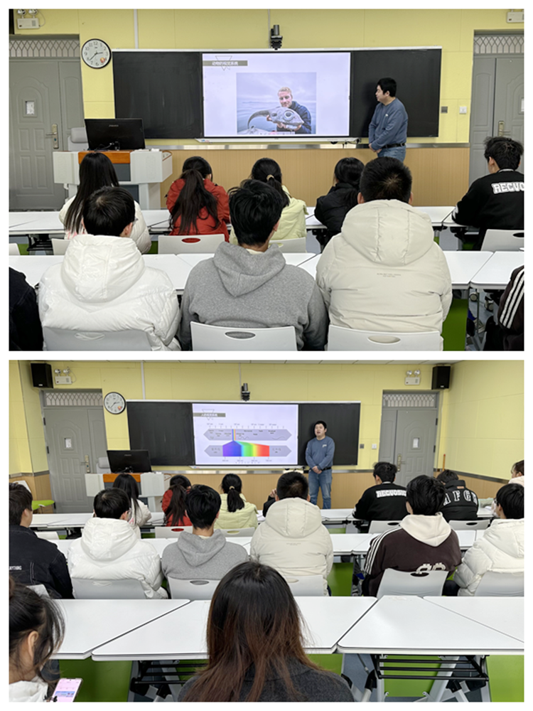 杨彪博士以人类视觉系统的基本结构为切入点,深入讲解了人眼的结构、色彩感知原理、视觉信息和大脑的交互识别过程等内容,通过生动的示意图和模型展示,让在场同学深入直观地了解了人类视觉形成和识别的这一神奇现象。