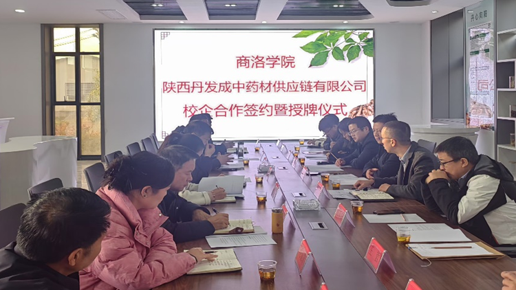 12月6日,生物医药与食品工程学院党委书记杨力、院长赵永平带领科研团队一行9人赴陕西省丹发成中药材供应链有限公司洽谈合作,签订校企合作战略协议。