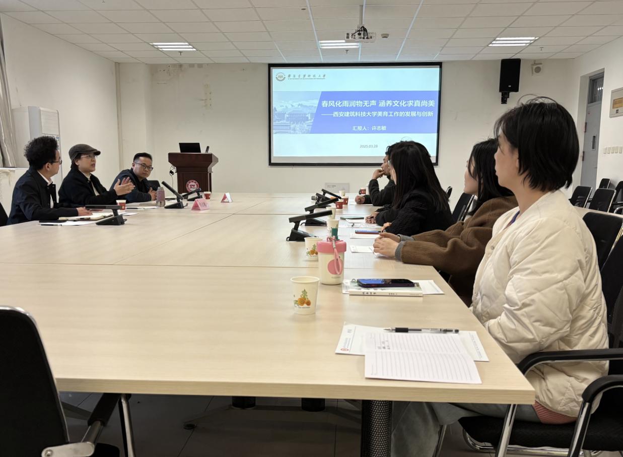 在美育讲座中,陕西省高校美育教指委副主任兼秘书长、西安建筑科技大学文化艺术教育中心主任许志敏受邀为开云官网美育工作办公室、公共艺术教育中心相关成员及艺术学院相关负责人作题为《春风化雨润物无声、涵养文化求真尚美——西安建筑科技大学美育工作的发展与创新》的报告,她结合高校美育工作经验,就高校如何遵循美育特点面向全体学生开展美育工作分享了多元化创新实施路径。许志敏提出要发掘非艺术专业学生的审美需求和艺术潜能,加强学生艺术社团在美育活动中的引领作用。在互动交流环节,与会教师就开云官网美育工作核心任务、美育师资队伍建设、美育课程建设等问题与许志敏深入交流,现场气氛热烈。
