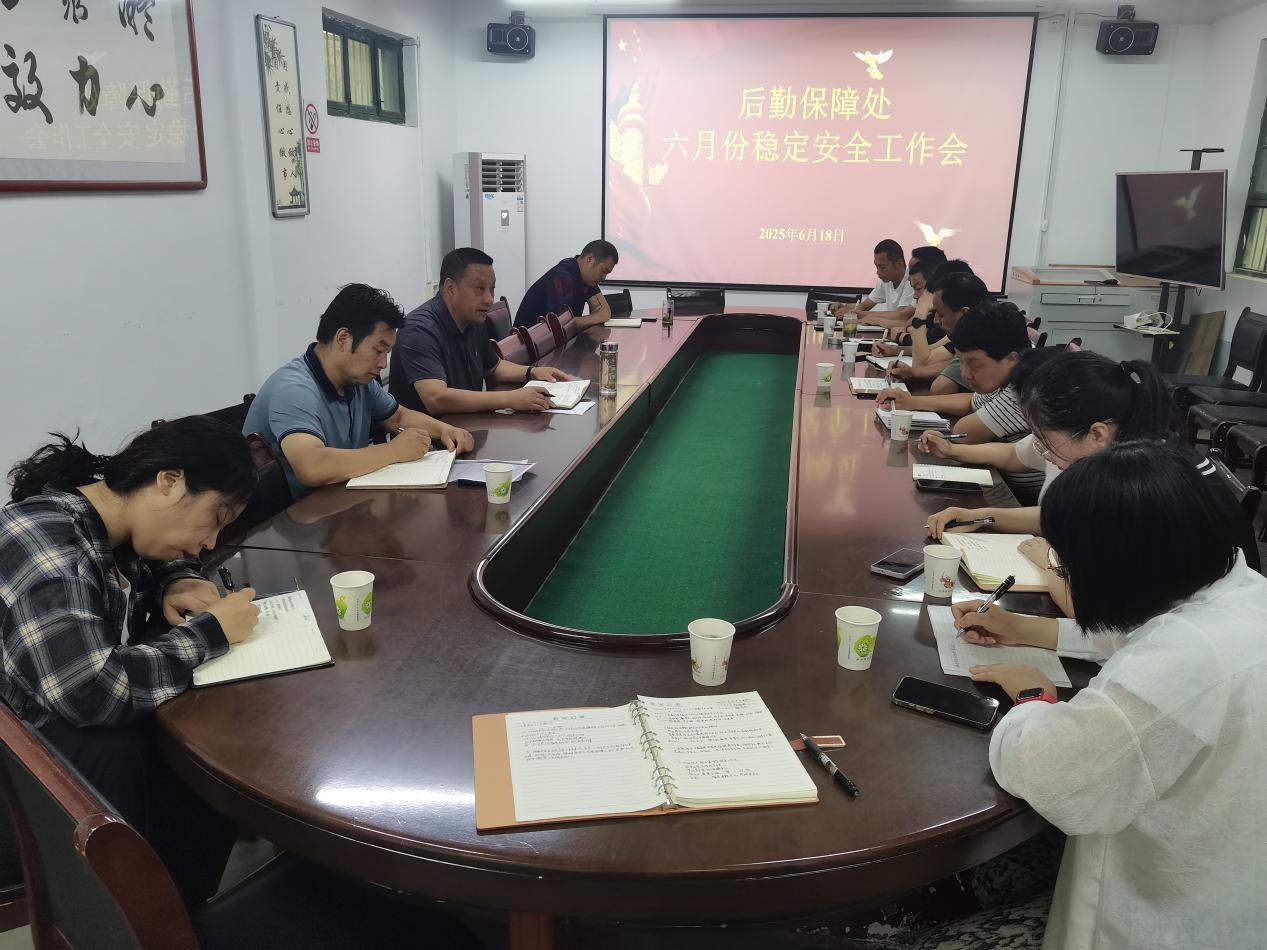 6月18日,后勤保障处组织召开6月份稳定安全工作专题会议,后勤保障处全体职工参加会议。会议传达了学校稳定安全工作会精神,集体学习了上级部门关于校园安全稳定的相关文件,安排部署了毕业生离校和近期安全稳定的各项工作。