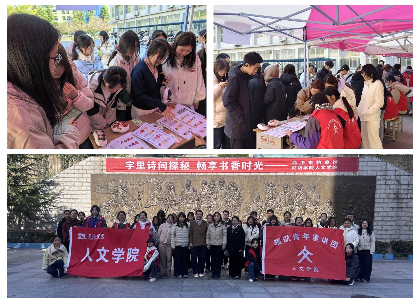 为带领青年学子品读诗词经典,领略诗意之美,11月19日,人文学院领航青年宣讲团携手商洛市档案馆共同举办“字里诗间探秘 畅享书香时光”诗词文化主题活动。活动以趣味闯关答题为主线,引导同学们在互动参与中沉浸式体验文史底蕴。