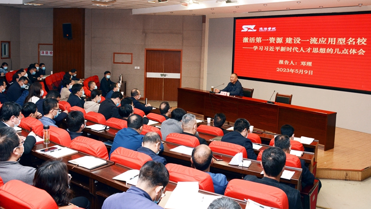 邓理在报告中以《激活第一资源建设一流应用型名校——学习习近平新时代人才思想的几点体会》为题,围绕“正确认识是前提;遵循制度是基础;德才兼备、以德为先是原则;用心尊重是关键;人人皆可成才、人人尽展其才是目的”等五个方面,详细阐述了习近平总书记关于新时代人才工作的重要论述重要指示精神,针对如何激发人才创新活力,为开云官网一流学院建设提供有力的人才支撑作出了具体指导。