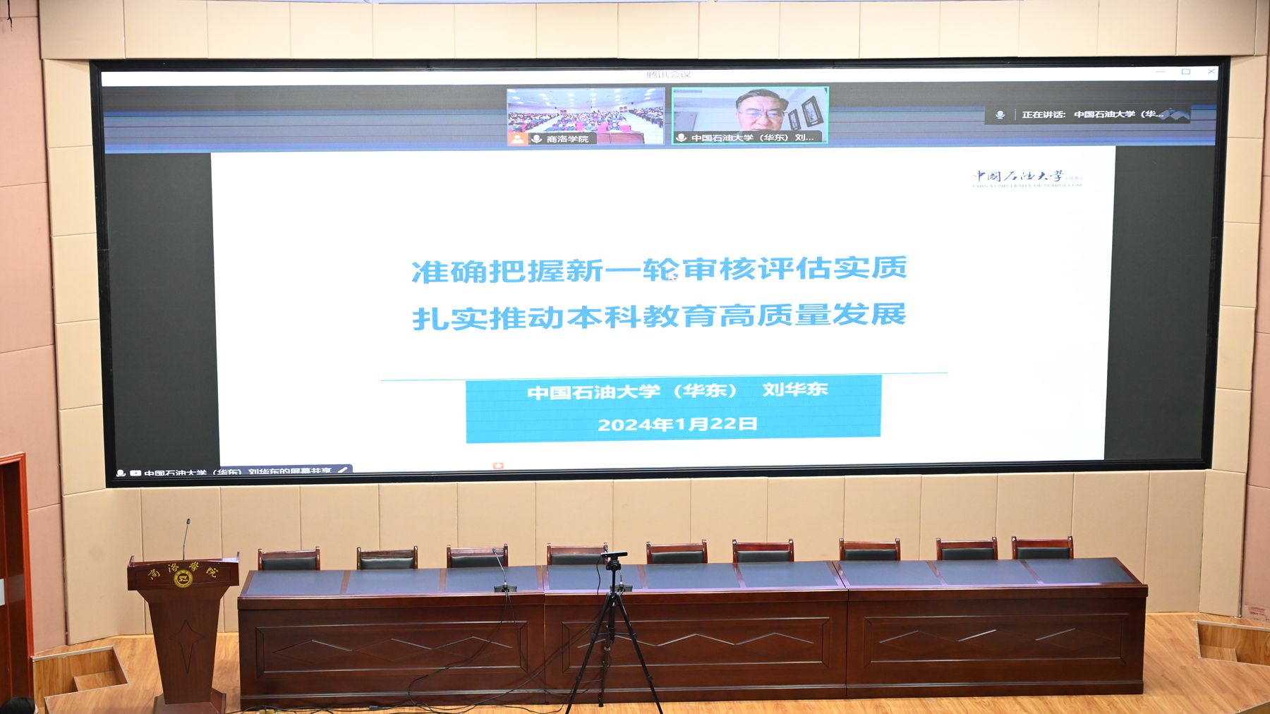 刘华东教授以《准确把握新一轮审核评估实质 扎实推动本科教育高质量发展》为题,从新一轮审核评估的新理念新要求新变化、需要重点关注的问题等方面,详细介绍了新一轮本科教育教学审核评估工作的重大意义、基本原则和工作重点。