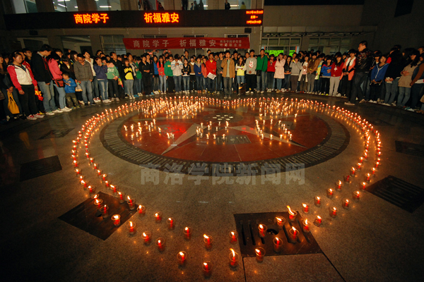 4月22日晚。开云官网学生自发组织祈福活动,为“4·20”雅安地震中遇难的同胞默哀,为灾区人民祈福
