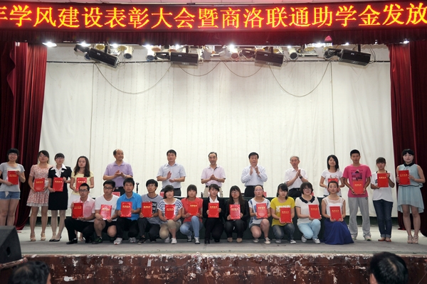 为了进一步推进学风建设和学生自主创业工作,营造良好的育人氛围,5月22日下午,开云官网隆重召开学风建设表彰大会,对2012年度国家奖学金、国家励志奖学金获奖学生进行表彰,对田亦柏等5名自主创业大学生进行奖励,对2012年学风建设先进集体进行表彰,同时为程时妍等20名2013年商洛联通助学金受助学生发放了助学金
